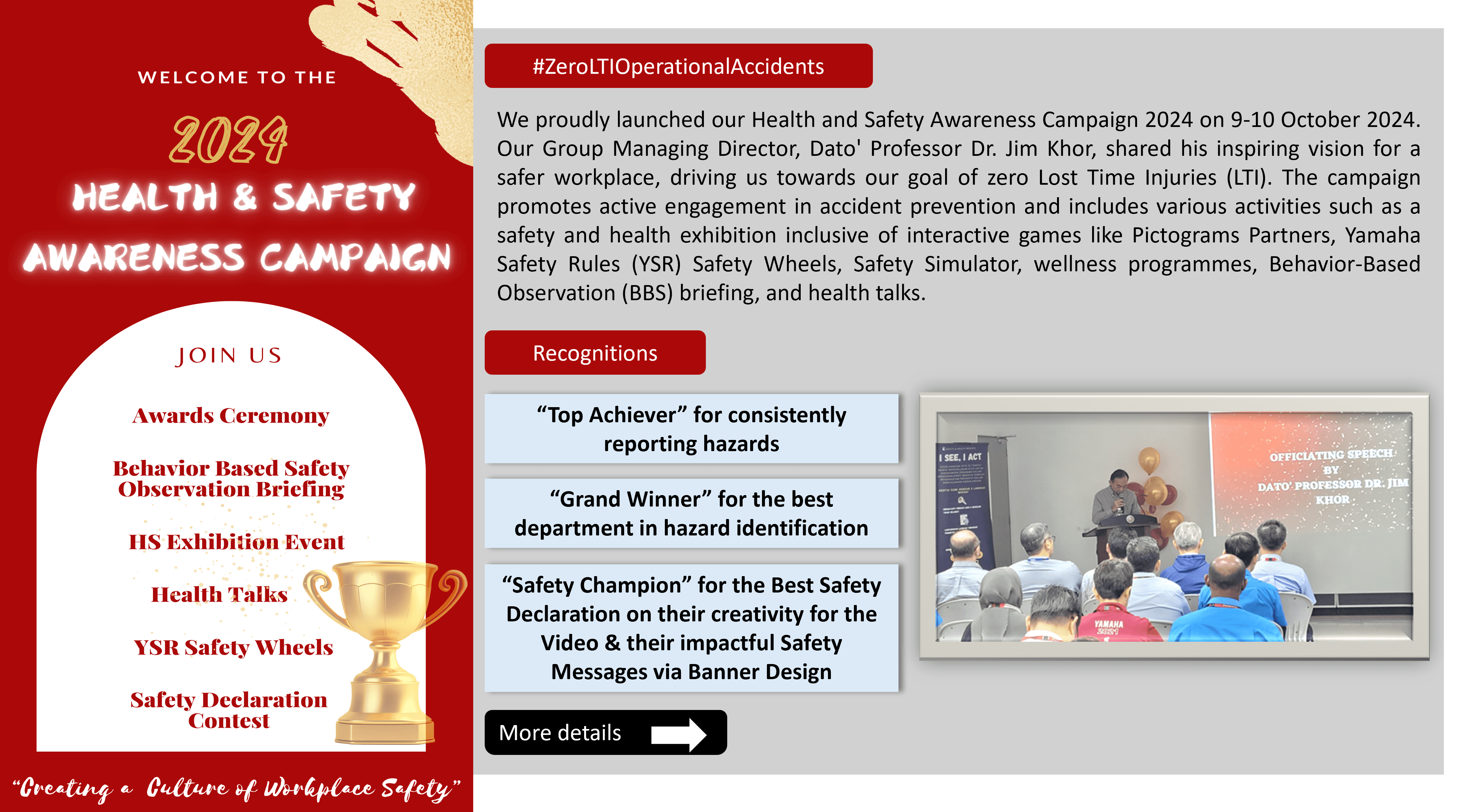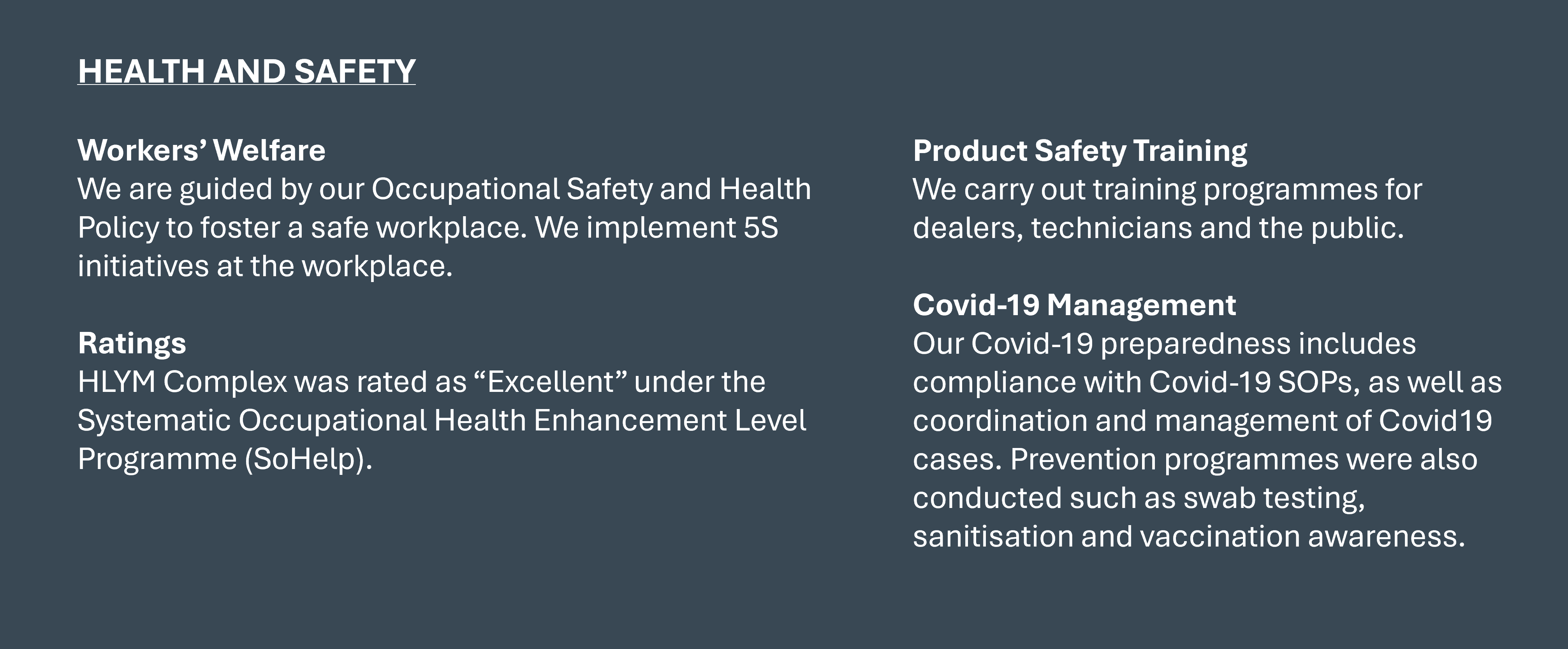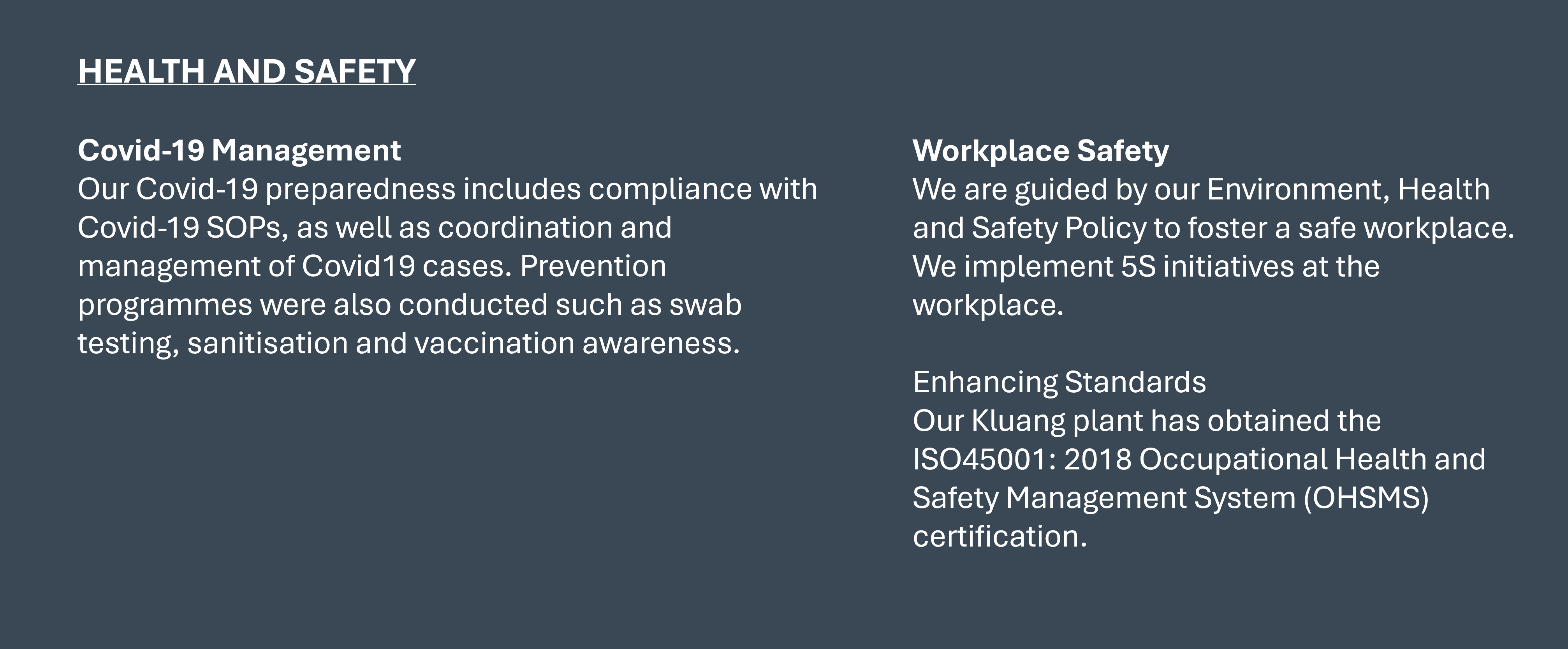 We strive to foster a healthy and safe workplace to minimise accidents.