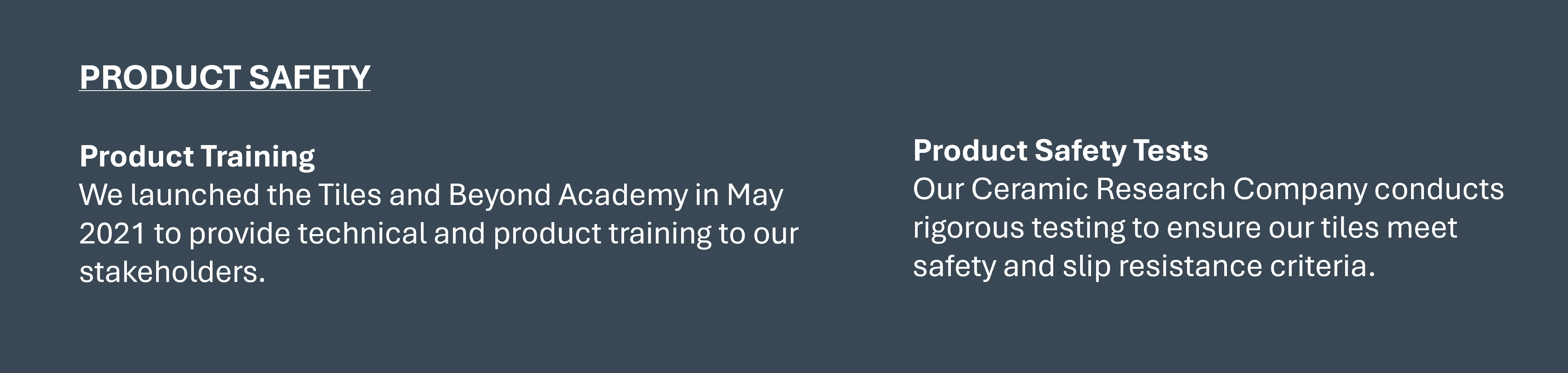 We focus on ensuring our employees are equipped with vital knowledge on product safety and quality.